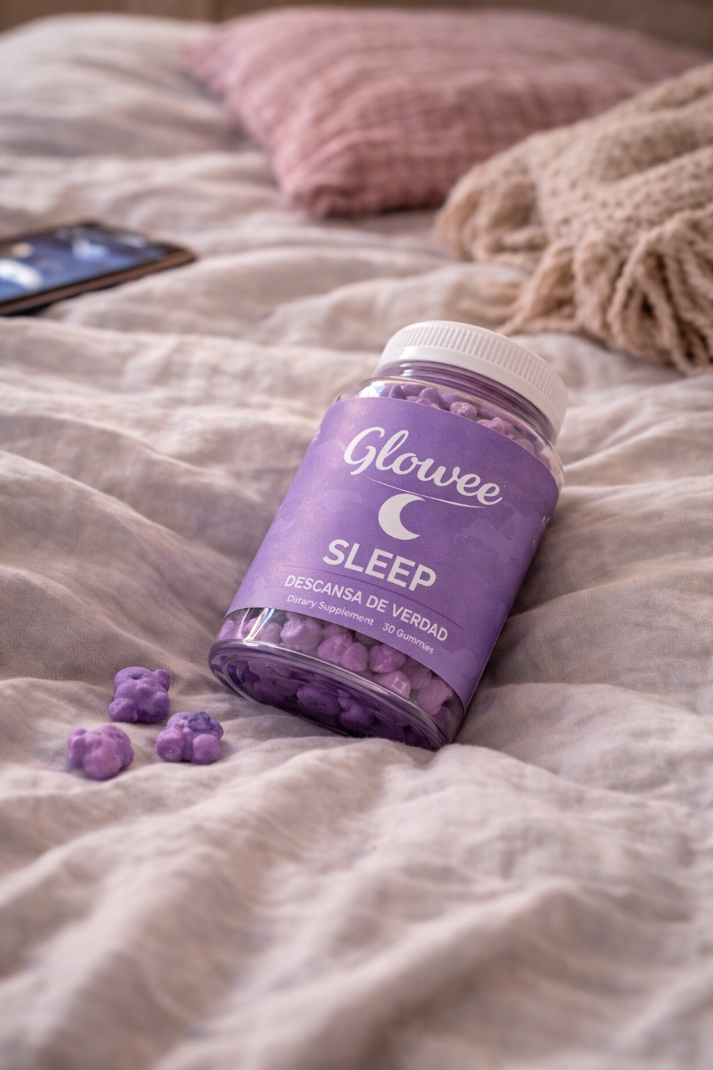 Con su deliciosa fórmula en gomitas y una combinación de ingredientes pensados para relajar cuerpo y mente, Glowee Sleep transforma tu noche en un ritual simple, delicioso y constante.